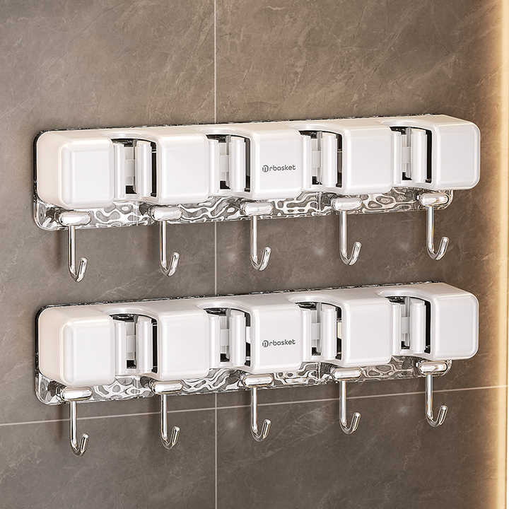 Support mural auto-adhésif pour balais, serpillières et outils — fixation sans perçage, antidérapant, garder matériel de nettoyage bien rangé.
